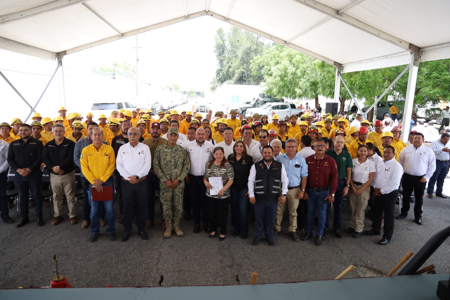 También participaron en el acto la secretaria de Desarrollo Urbano y Medio Ambiente, Karina Lizeth Saldívar Lartigue, y el secretario de Desarrollo Rural, Antonio Varela Flores, quienes coincidieron en reconocer el profesionalismo y valentía de los brigadistas, así como la preparación constante del personal por parte de CONAFOR.