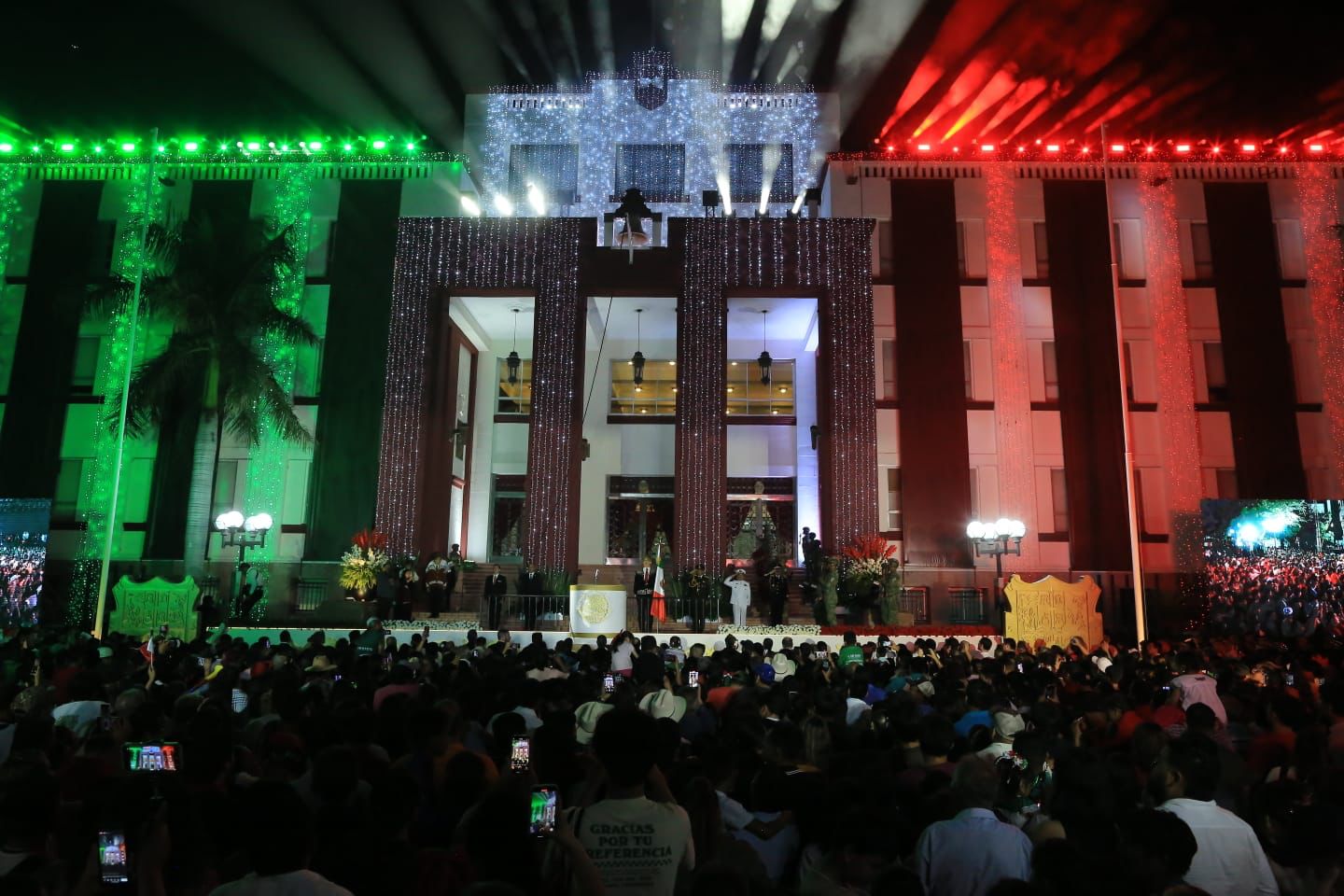 Mediante un enlace virtual, el gobernador junto a la presidenta del DIF Tamaulipas, María de Villarreal y las y los asistentes presenciaron el histórico Grito de Independencia de la primera presidenta de México, Claudia Sheinbaum Pardo, desde Palacio Nacional.
