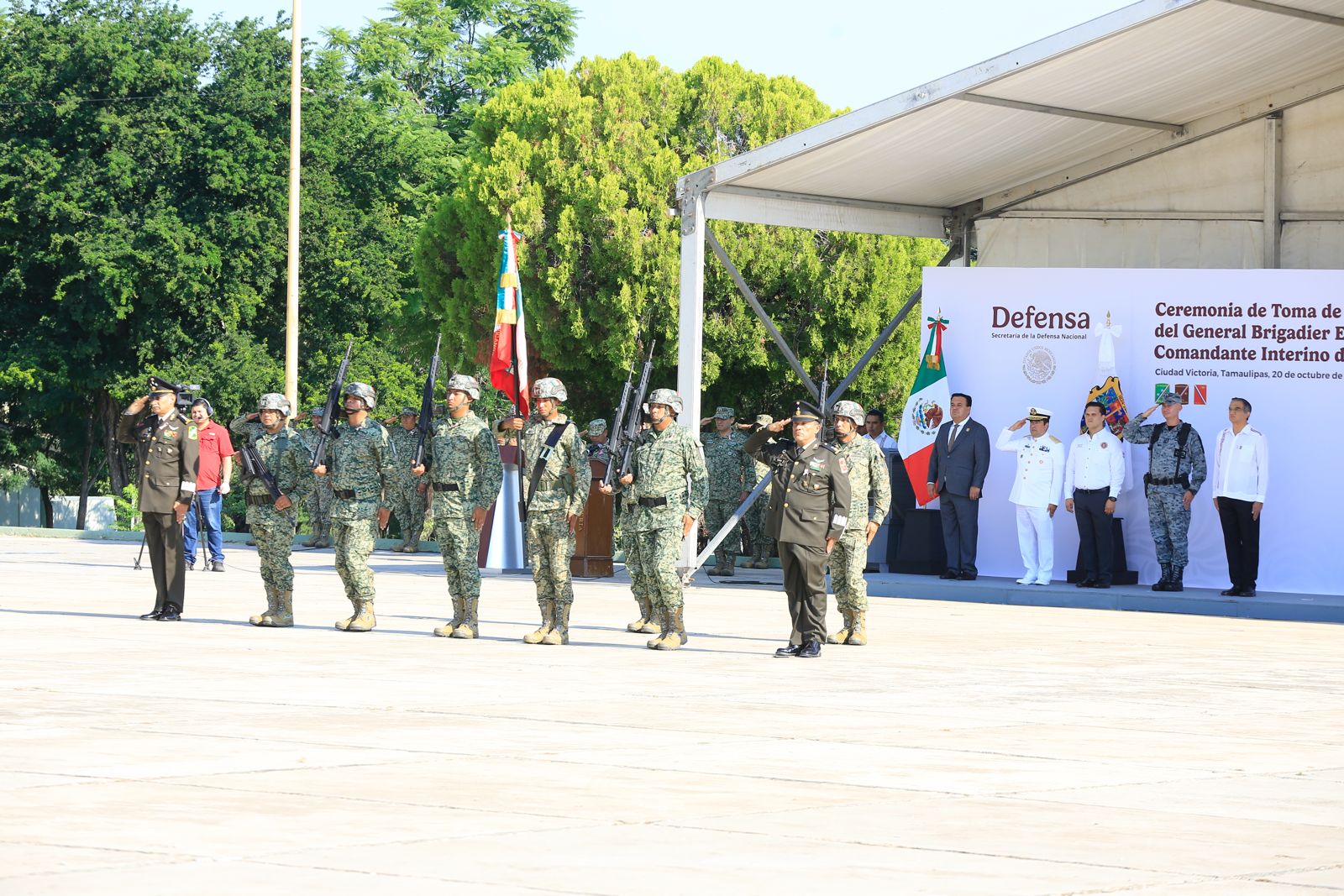 Ciudad Victoria, Tamaulipas. – El gobernador Américo Villarreal Anaya asistió como invitado de honor a la toma de posesión al cargo y protesta de bandera del general brigadier de Estado Mayor, Newton Manuel Chávez Baños, como comandante interino de la 48 Zona Militar.