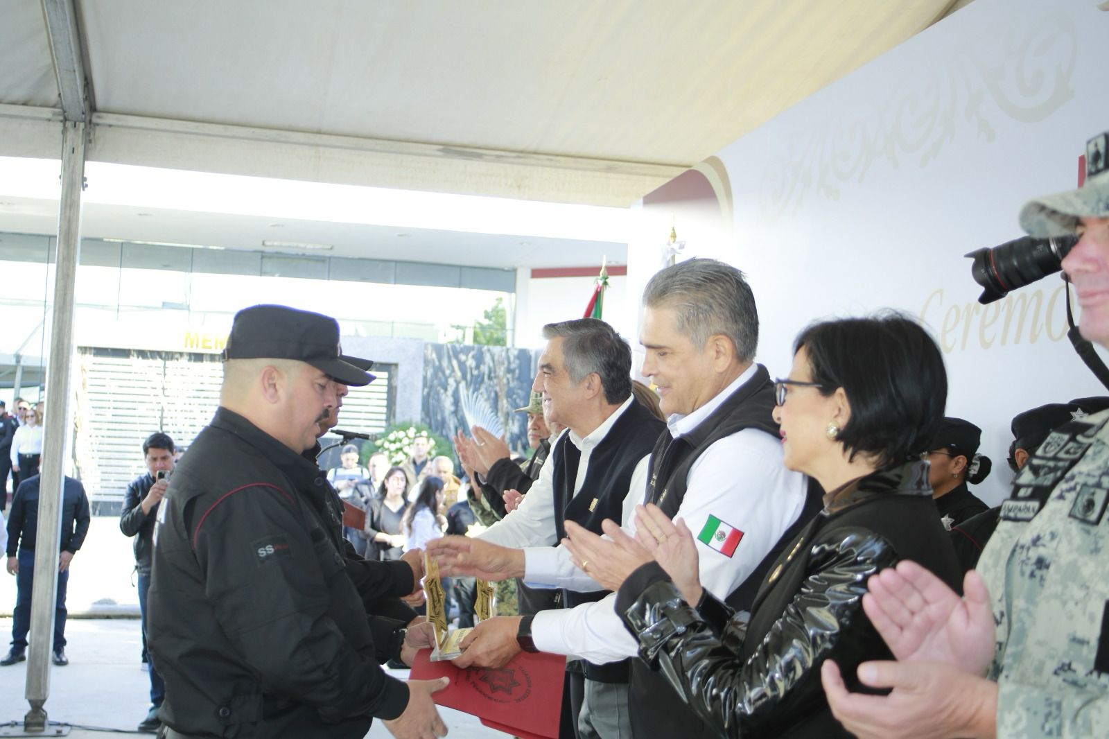 Asimismo se entregó un reconocimiento y estímulo económico a Jorge Patricio Ruiz Salas, autor del nuevo himno a la Guardia Estatal, además de oficios de ascenso de grado y reconocimientos por méritos académicos y deportivos, así como equipo táctico para las y los elementos de la Guardia Estatal.