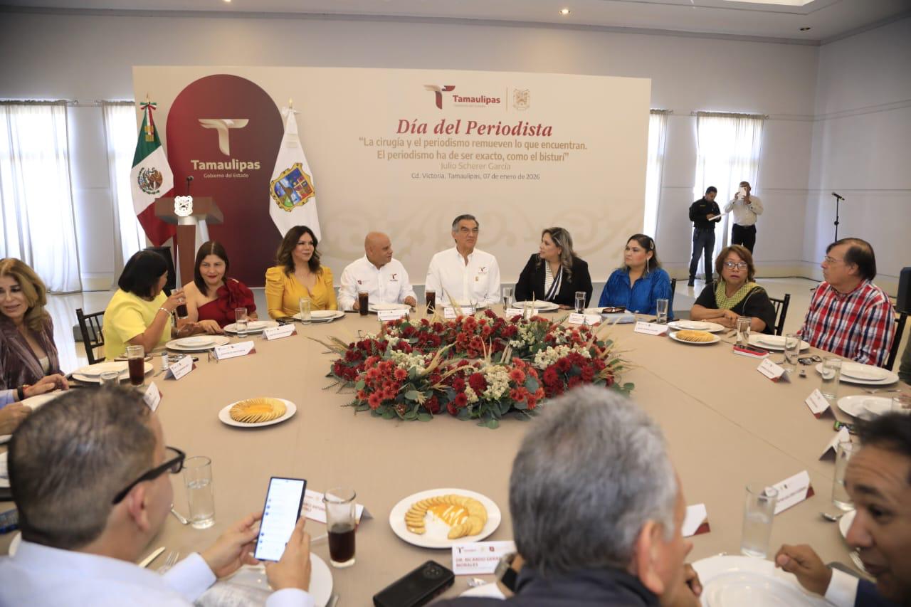 “Tenemos muy claro que sin periodistas no hay sociedad libre y que en Tamaulipas esa libertad se ejerce todos los días. Y donde hay periodistas ejerciendo su oficio con dignidad, hay contrapesos, hay memoria y hay futuro”, puntualizó.