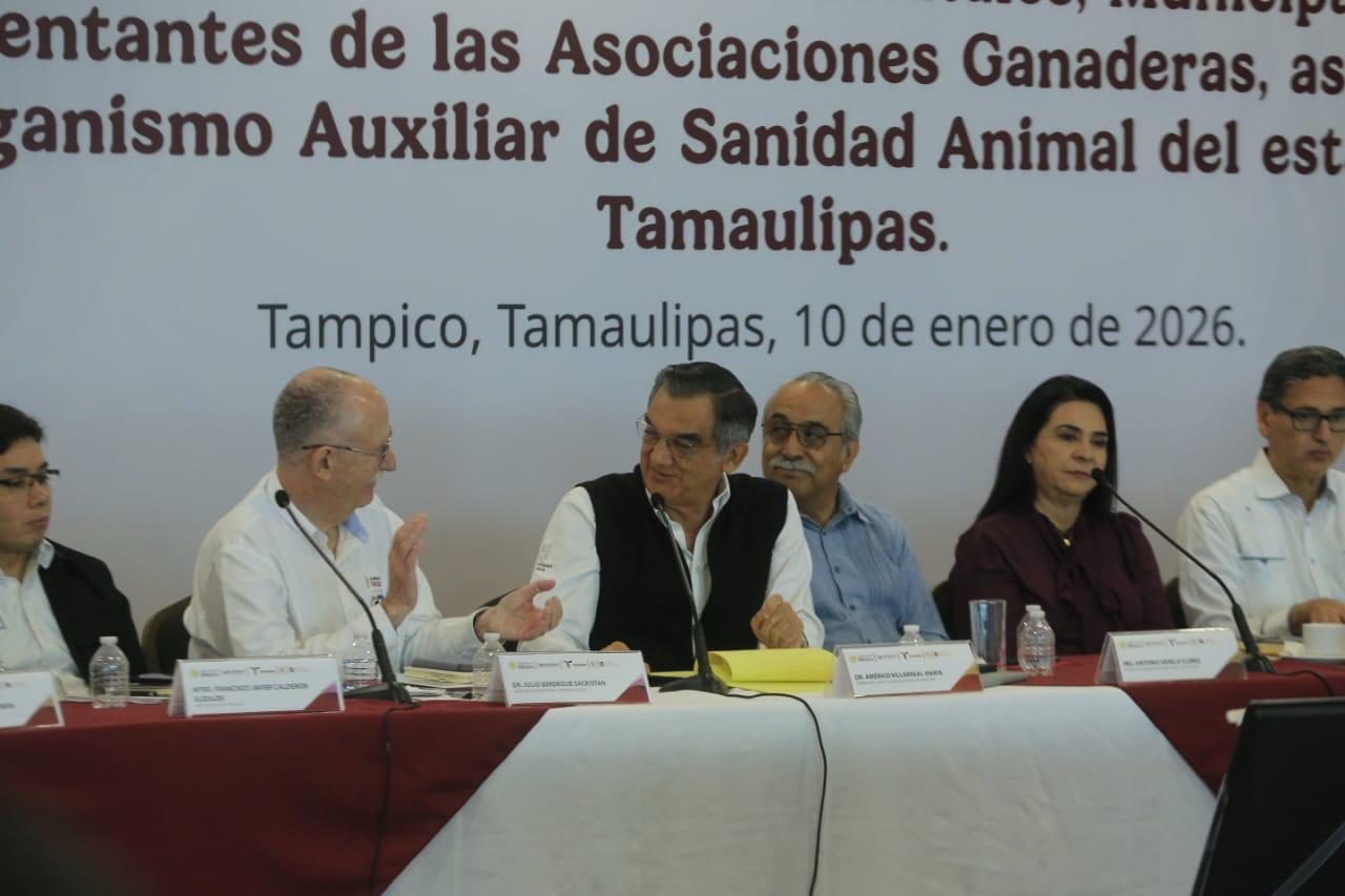 Durante una reunión con presidentas y presidentes municipales, titulares de asociaciones ganaderas, la dirigencia de la Unión Ganadera Regional de Tamaulipas y productores ganaderos, el gobernador del estado reiteró todo su apoyo a la estrategia y destacó la inmediata respuesta de la presidenta Claudia Sheinbaum para respaldar al sector ganadero de la entidad.